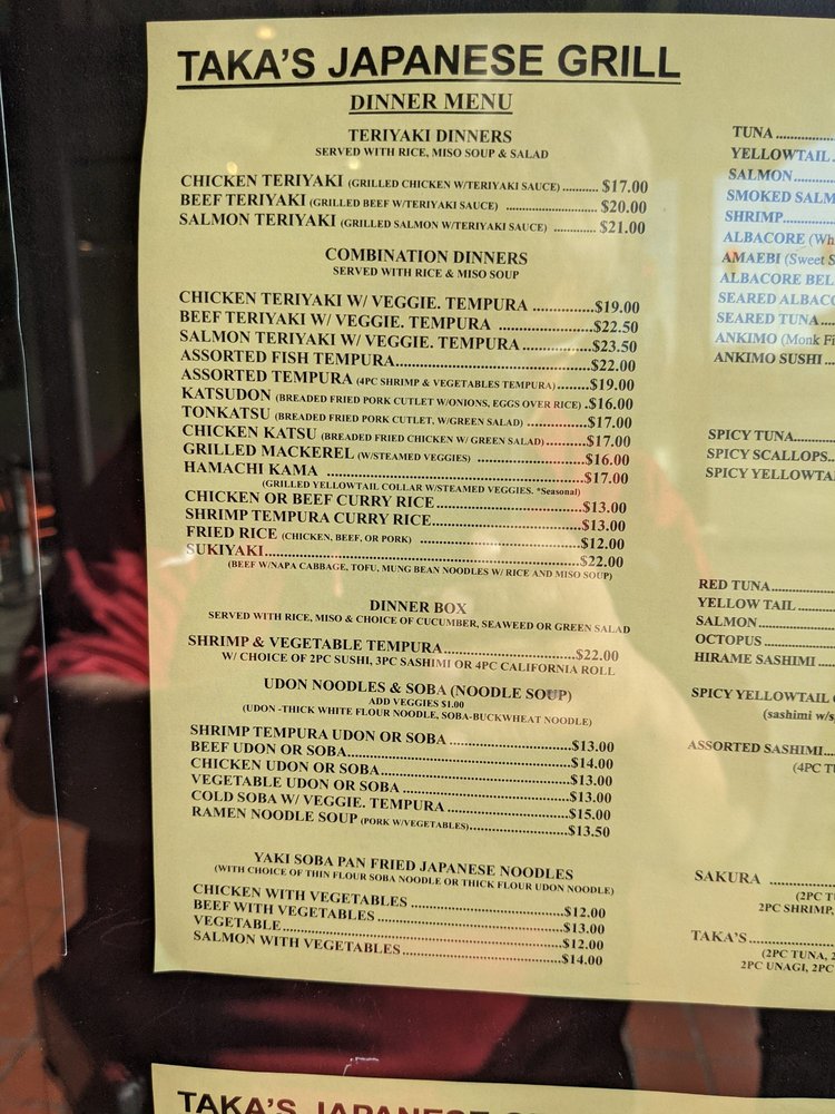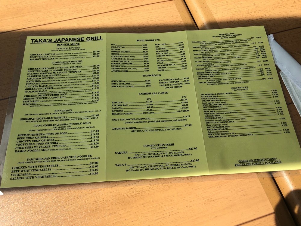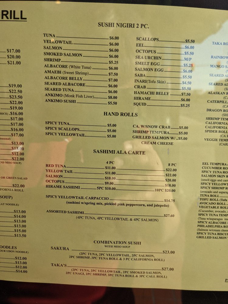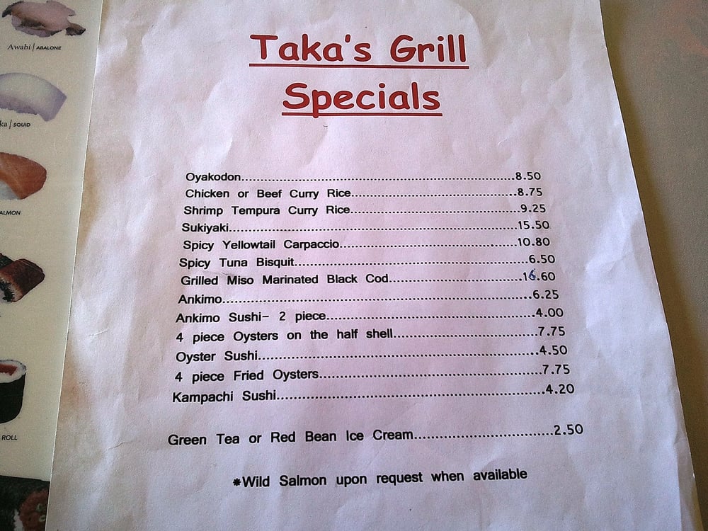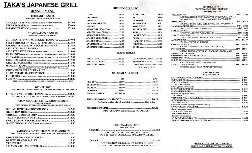 Taka’s Grill Menu