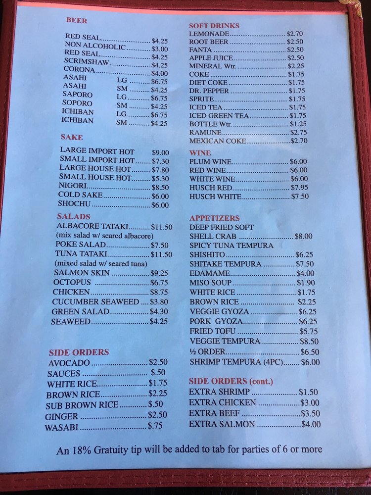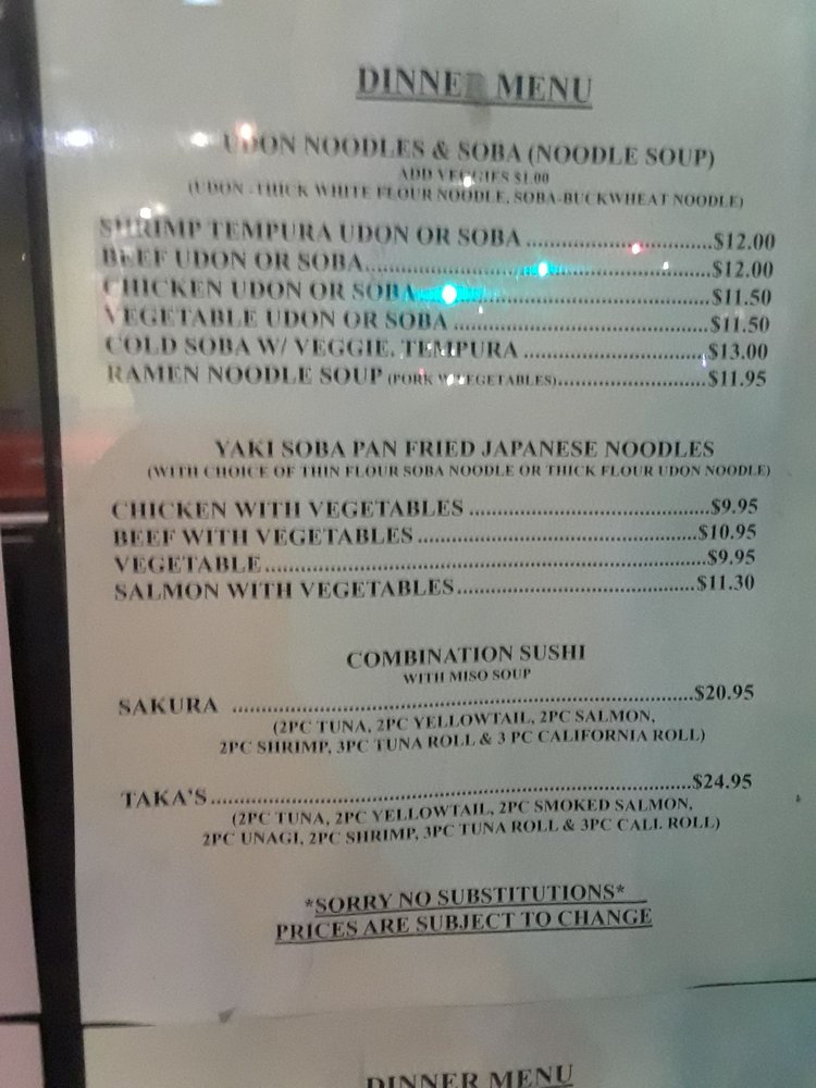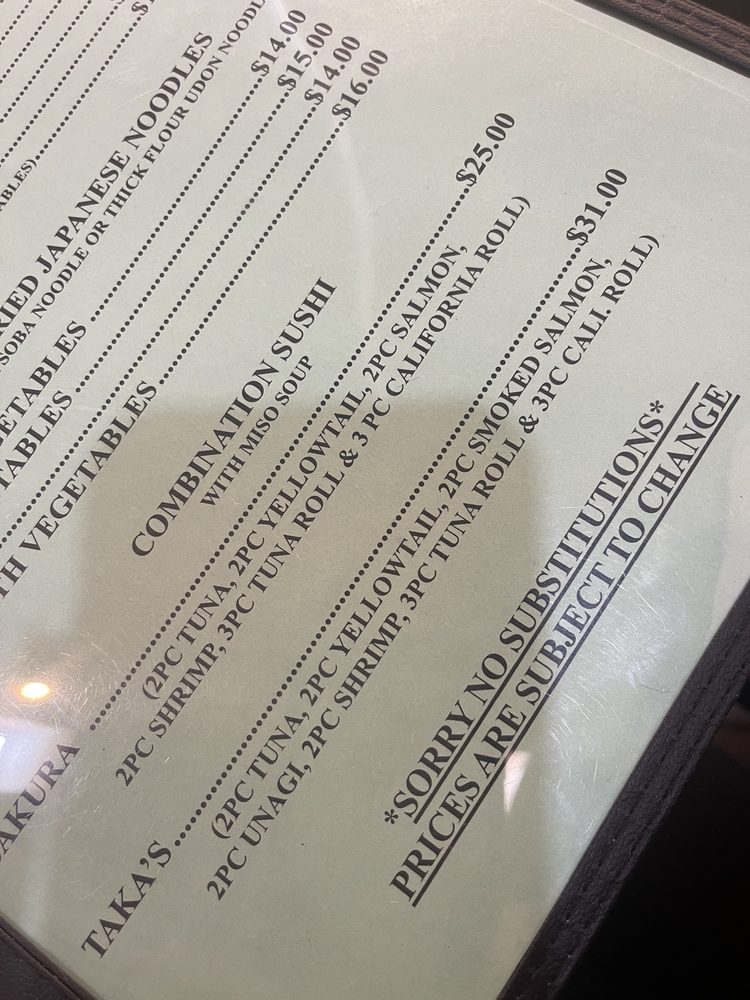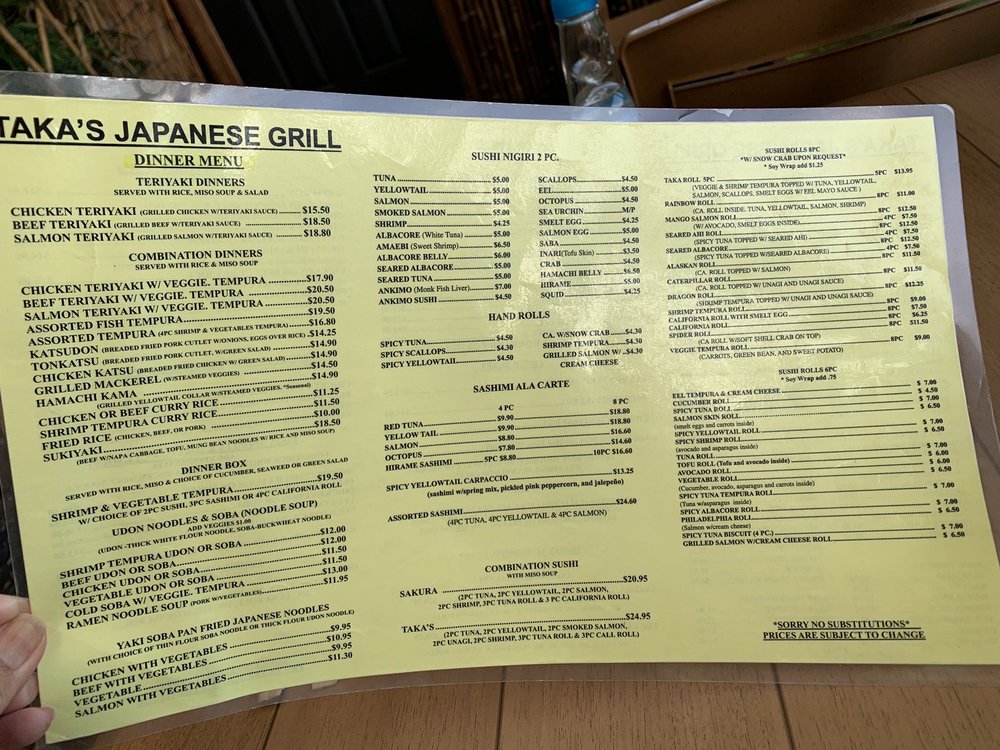 Taka’s Grill Menu